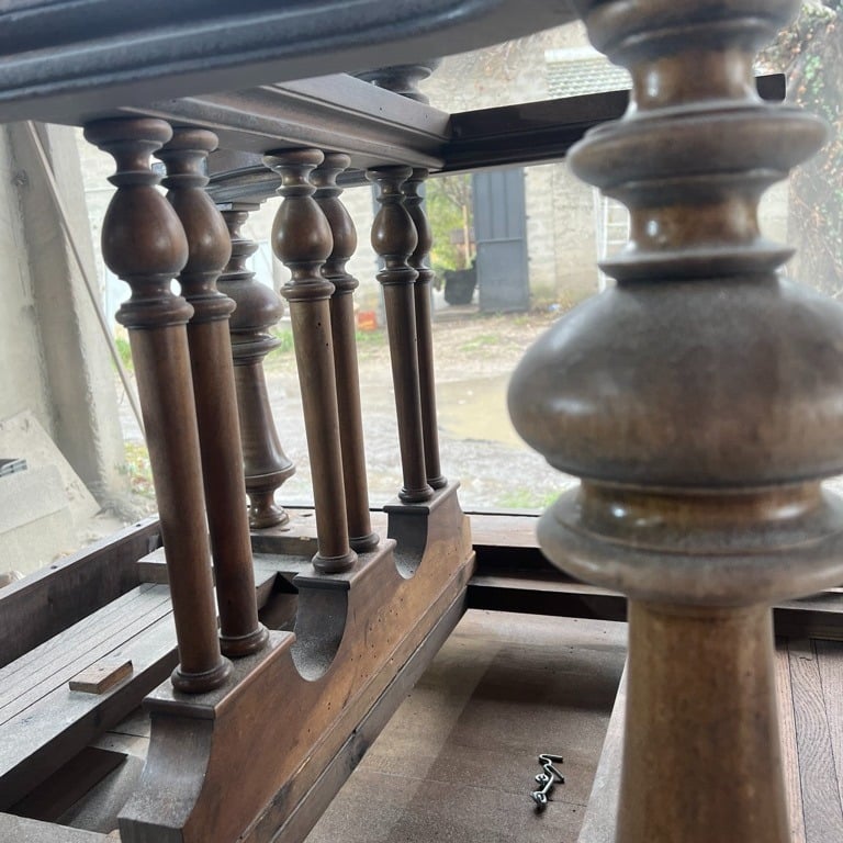 Noyer : souvent verni ou ciré, idéal à remettre à nu avant finition