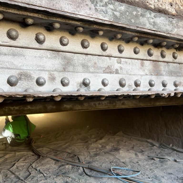Décapage d'une structure en acier d’un aqueduc à Salon-de-Provence dans les Bouches-du-Rhône